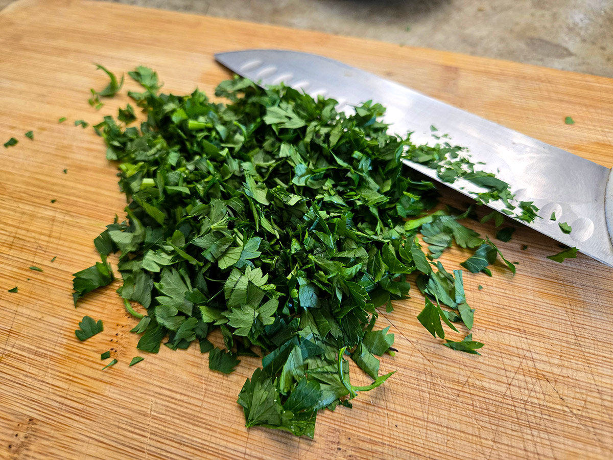 🔹 Skala och finhacka vitlök – små tärningar, inte pressad.