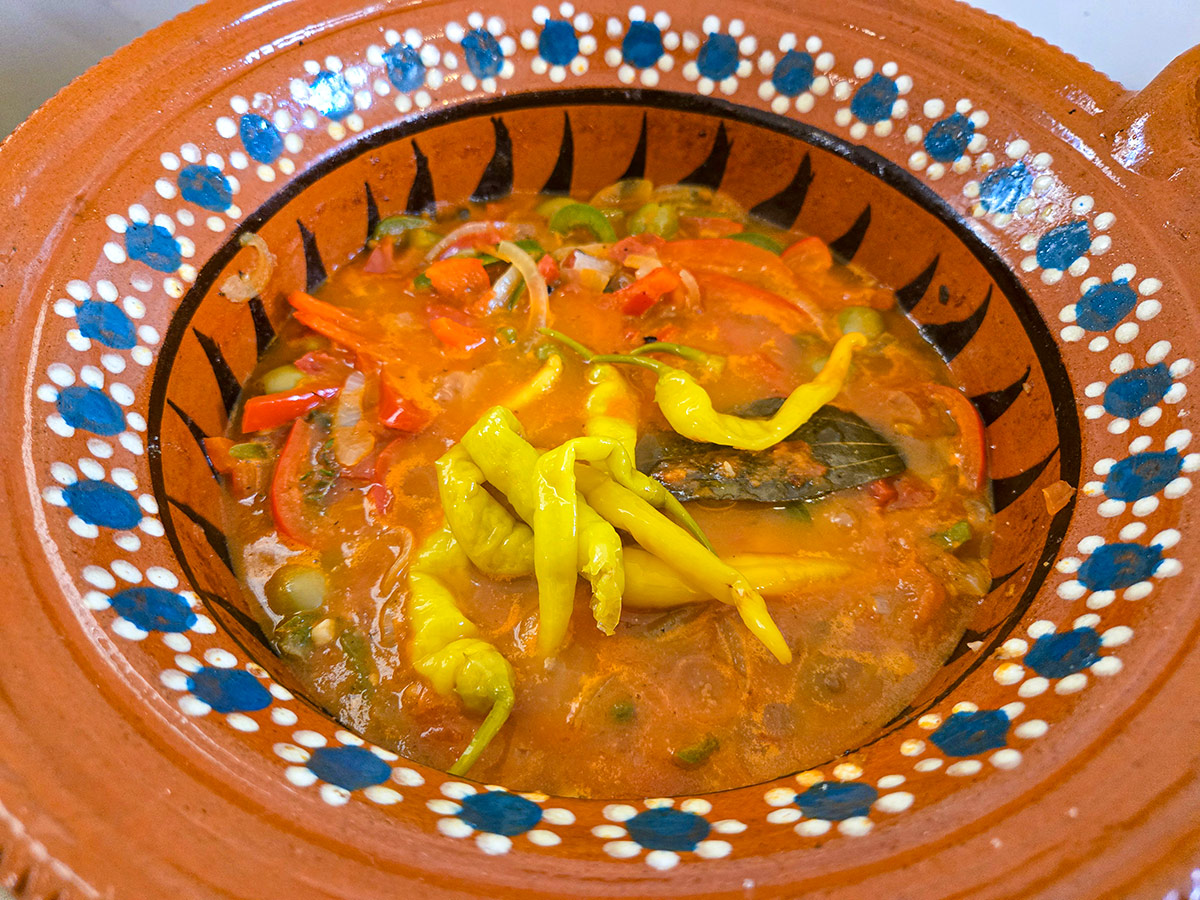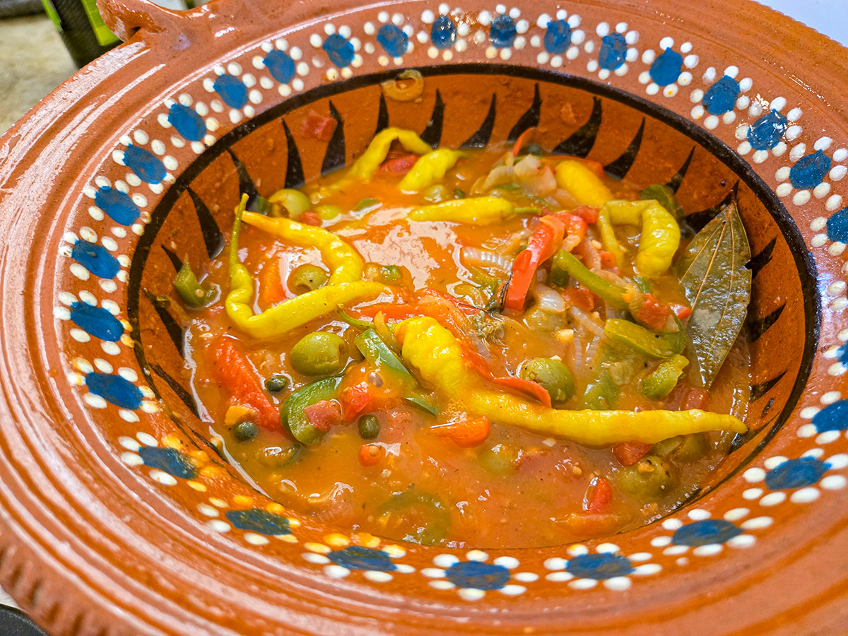 Att något är a la Veracruzana innebär att det tillagas i en tomatbaserad sås med lök, vitlök, oliver, kapris och chili — en smakprofil som speglar Veracruz’ historia som hamnstad där spanska och inhemska influenser möttes. Rätten är ett exempel på hur mexikansk mat kan vara både elegant och tillgänglig, med fokus på råvarans naturliga smak snarare än kryddstark intensitet.
