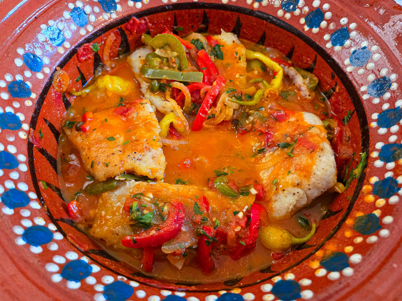 Fisk a la Veracuzana med tomat, kapris och oliver