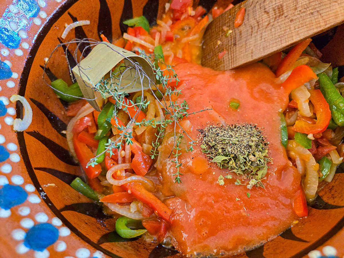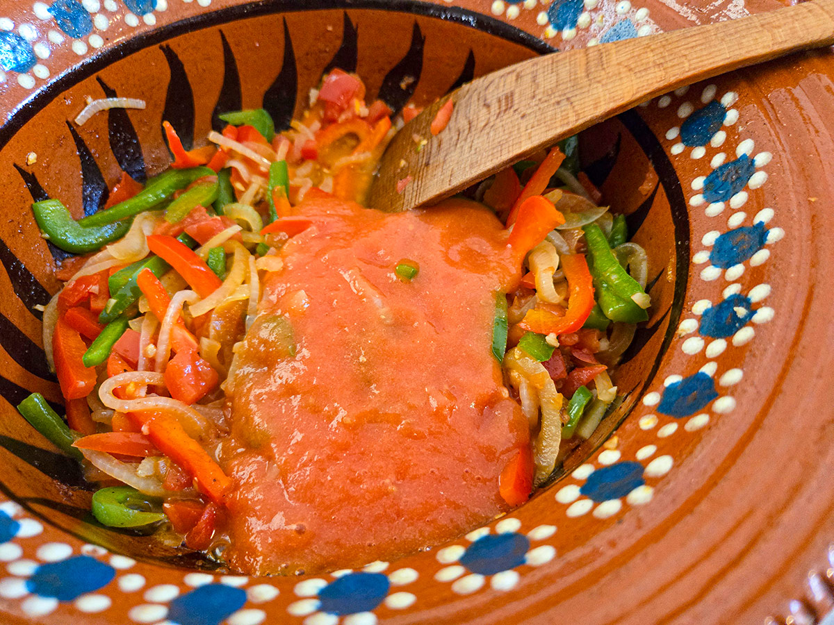 Båda alternativen ger en fyllig sås med rätt konsistens. Undvik färdig pastasås eller tomatkross med tillsatt socker — de kan störa balansen i den subtila Veracruzana-smaken.