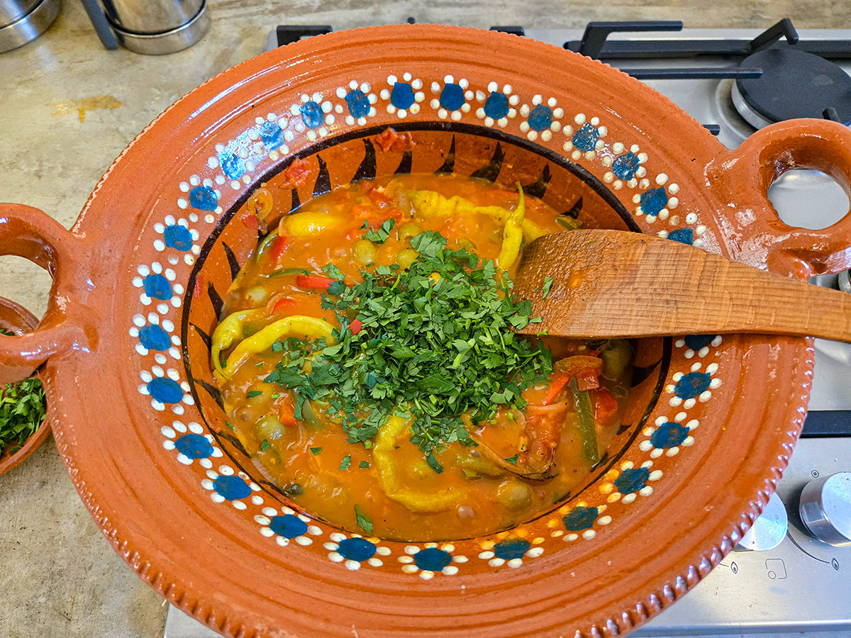 Men det är också vanligt att skiva eller grovhacka oliverna — särskilt om man vill sprida smaken jämnare i såsen eller göra rätten mer barnvänlig. Det är en smakfråga snarare än en regel.