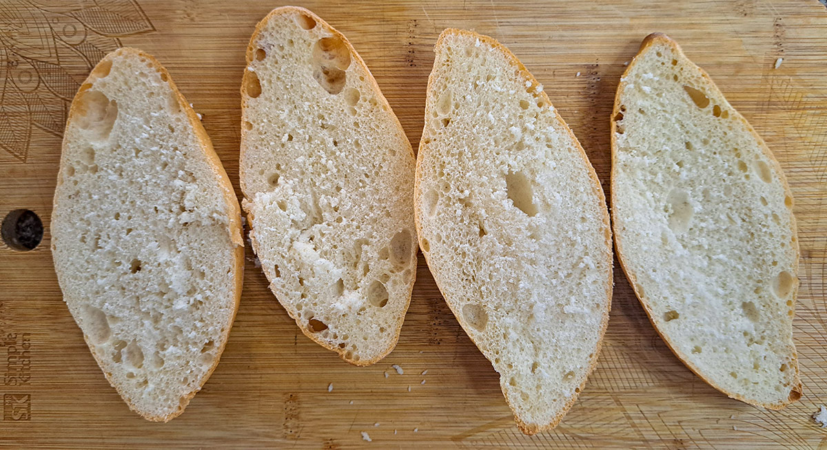 Molletes görs oftast av dagsgamla eller äldre bröd som blivit lite torra och trista, men perfekta för ändamålet. Använder du ett färskt bröd kan det vara lämpligt att rosta eller steka det lite i en stekpanna först (gärna i lite olja om du vill göra en lyxigare variant). Anledningen till att vi inte vill ha en för färsk fralla är att den lätt blir lite för mjuk med alla toppings.