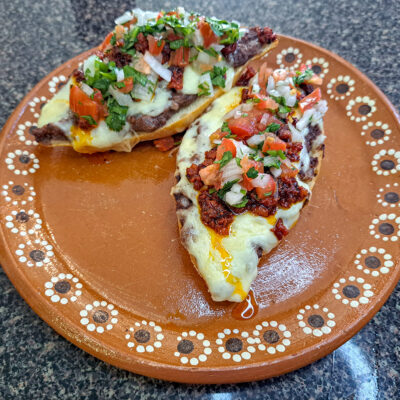 6 Färdig | Toppa med Pico de GalloSe separat recept för Pico de Gallo för mer detaljerade instruktioner. Toppa din Mollete med Pico de Gallo och servera omedelbart! |