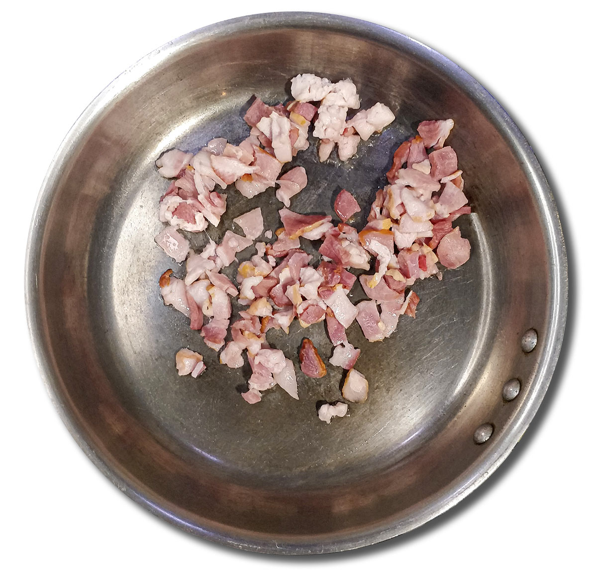 4 Färdig | Stek baconbitarnaLägg ditt bacon i en kall stekpanna och starta värmen. Det gör att fettet hinner börja smälta utan att ditt bacon fastnar. Anvädner du magert bacon kan du behöva tillsätta lite extra olja. |
