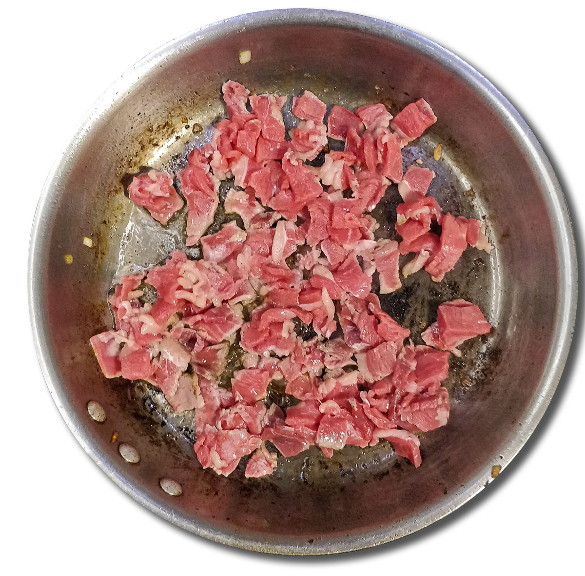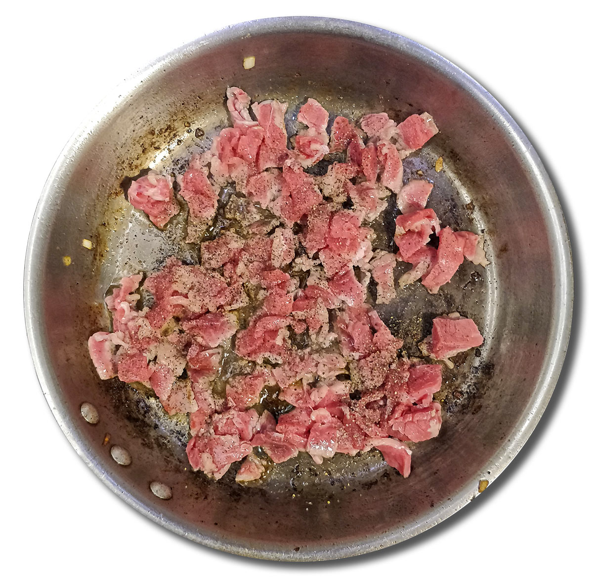7 Färdig | Stek köttetHöj temperaturen i stekpannan tills dess att fettet börja ryka lite. Är din stekpanna för torr kan du tillsätta lite olja. |