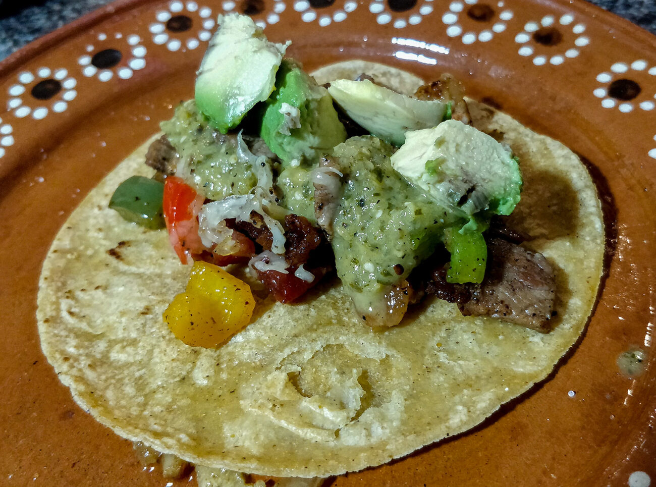 Det är också gott att ha lite avocado eller guacamole i din Alambre-taco.